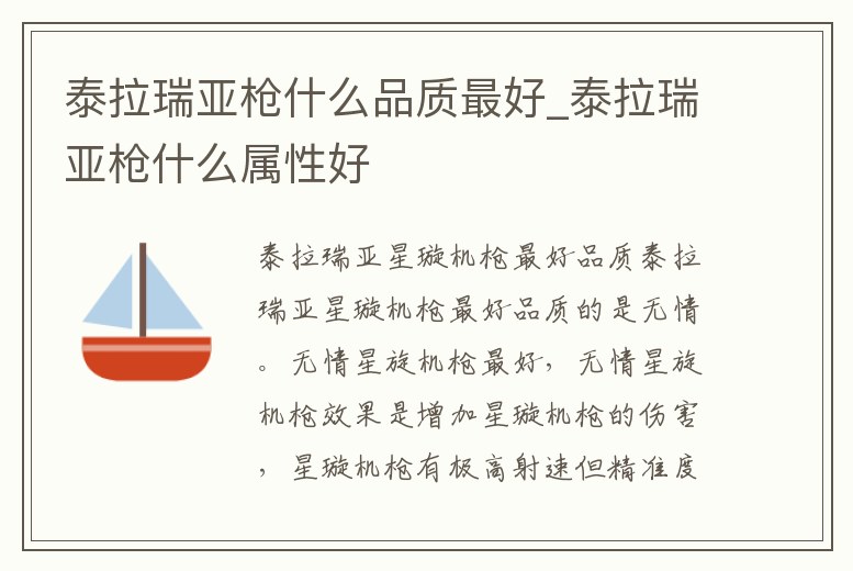 泰拉瑞亞星璇機槍最好品質的是無情。無情星旋機槍最好,無情星旋機槍效果是增加星璇機槍的傷害,星璇機槍有極高射速但精準度不高,配和葉綠彈后子彈就能夠自動追蹤敵人,也解決了精準度的問題,而且新星旋槍的攻擊力更高。