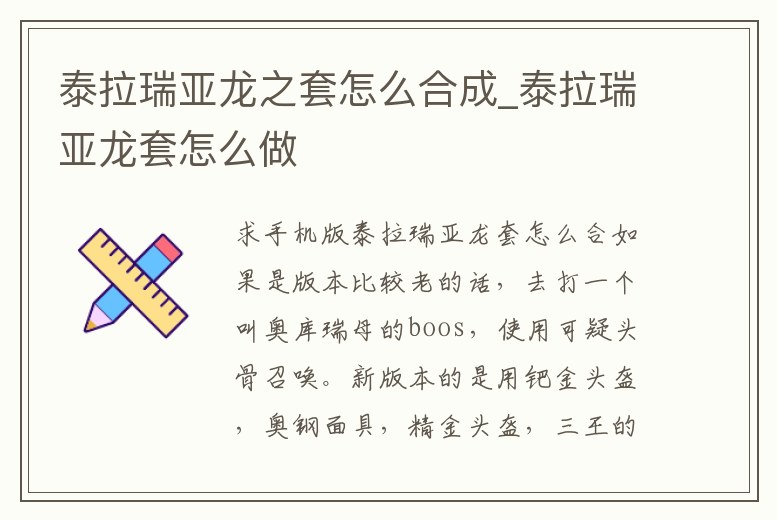 泰拉瑞亞龍之套怎么合成_泰拉瑞亞龍?zhí)自趺醋?/h1>