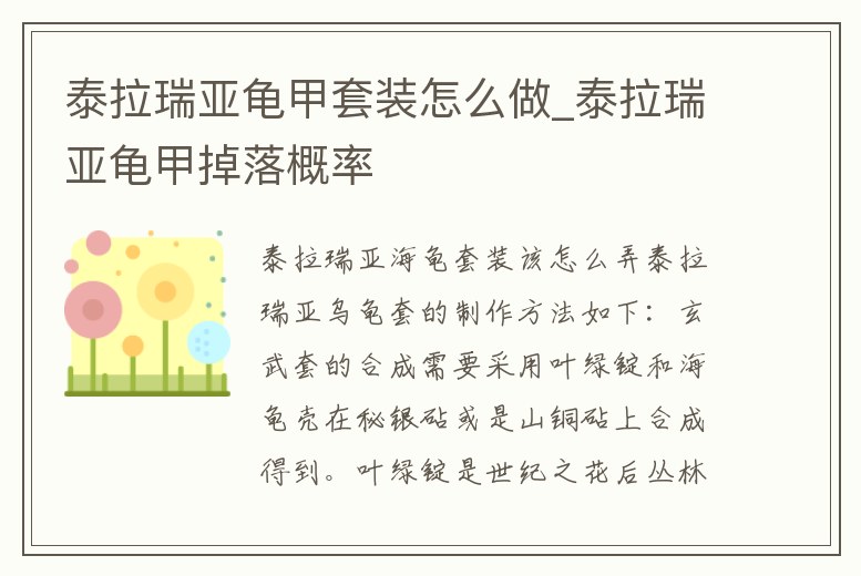 - 泰拉瑞亞龜甲套裝怎么做_泰拉瑞亞龜甲掉落概率