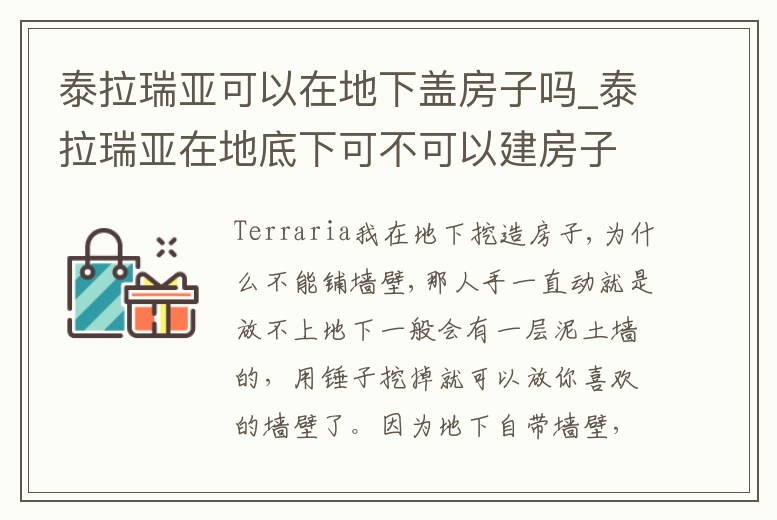 - 泰拉瑞亞可以在地下蓋房子嗎_泰拉瑞亞在地底下可不可以建房子