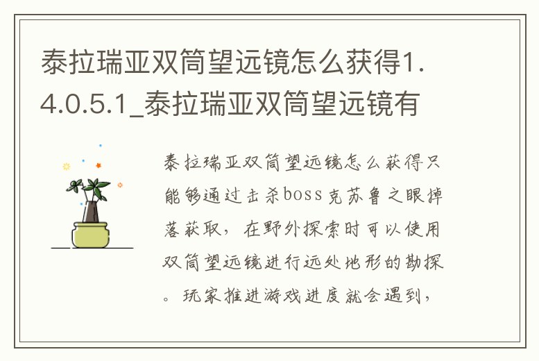 泰拉瑞亞雙筒望遠(yuǎn)鏡怎么獲得1.4.0.5.1_泰拉瑞亞雙筒望遠(yuǎn)鏡有什么用