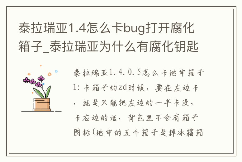 泰拉瑞亞1.4怎么卡bug打開(kāi)腐化箱子_泰拉瑞亞為什么有腐化鑰匙卻打不開(kāi)腐化寶箱
