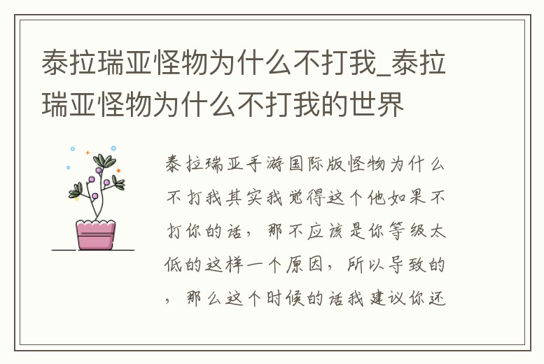 泰拉瑞亞怪物為什么不打我_泰拉瑞亞怪物為什么不打我的世界
