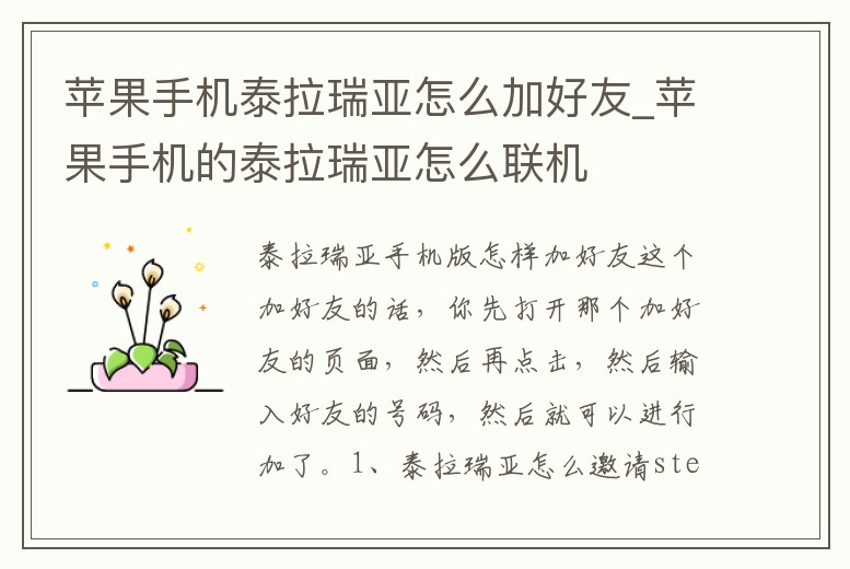 蘋果手機泰拉瑞亞怎么加好友_蘋果手機的泰拉瑞亞怎么聯(lián)機