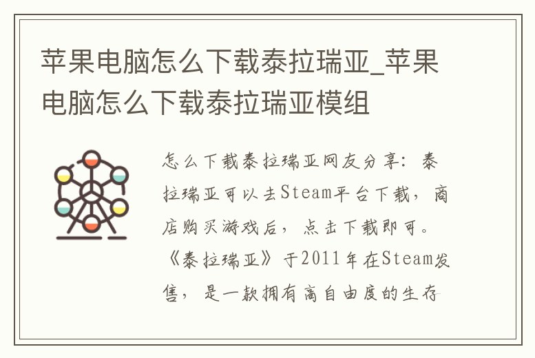 蘋果電腦怎么下載泰拉瑞亞_蘋果電腦怎么下載泰拉瑞亞模組