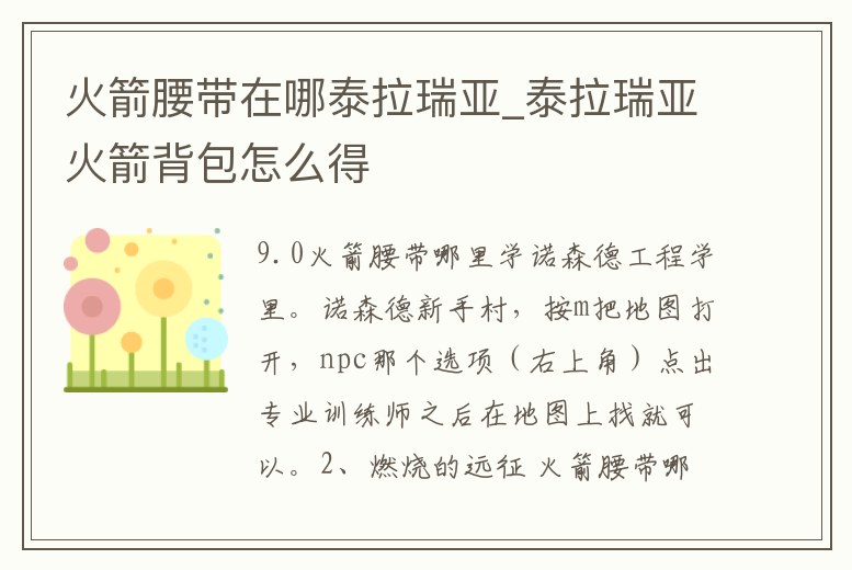 9.0火箭腰帶哪里學(xué)
