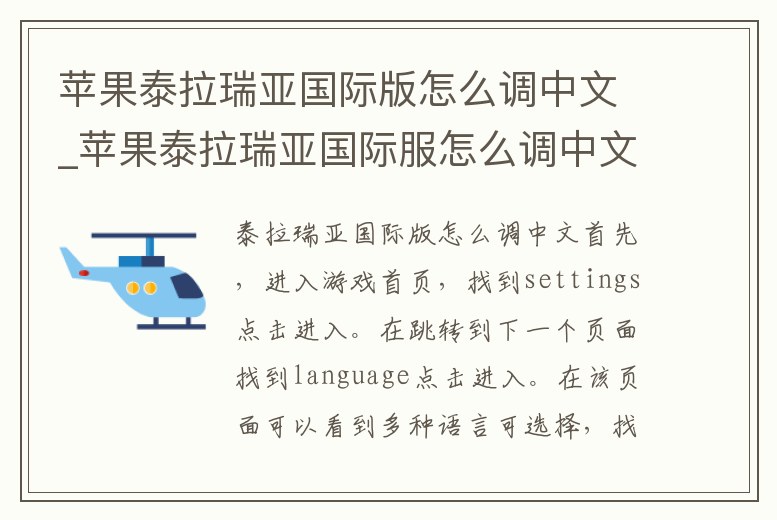《泰拉瑞亞》設置成中文的方法,打開游戲,在首頁找到settings點擊進入。在設置界面找到language選項點擊進入 。選擇中文選項,切換到簡體中文即可。中文版,首頁找到游戲設置進入。找到語言點擊。要換中文就。