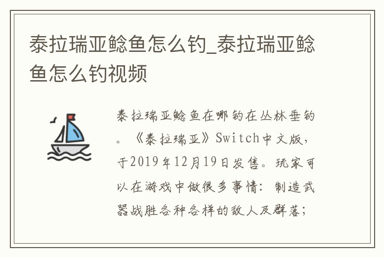 在叢林垂釣。《泰拉瑞亞》Switch中文版,于2019年12月19日發(fā)售。玩家可以在游戲中做很多事情:制造武器戰(zhàn)勝各種各樣的敵人及群落;挖掘地下尋找器材配件、金錢和其他有用的東西;收集木材,石材,礦石等資源;用世界里的一切創(chuàng)。