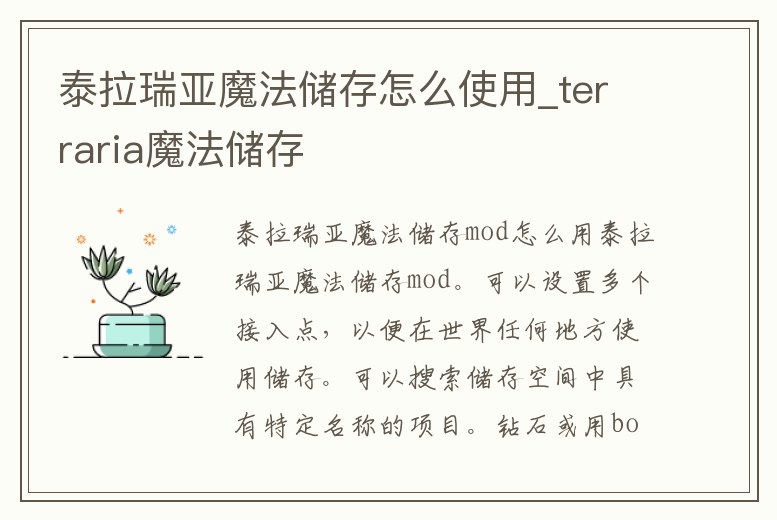 泰拉瑞亞魔法儲存怎么使用_terraria魔法儲存