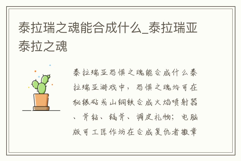 泰拉瑞之魂能合成什么_泰拉瑞亞泰拉之魂
