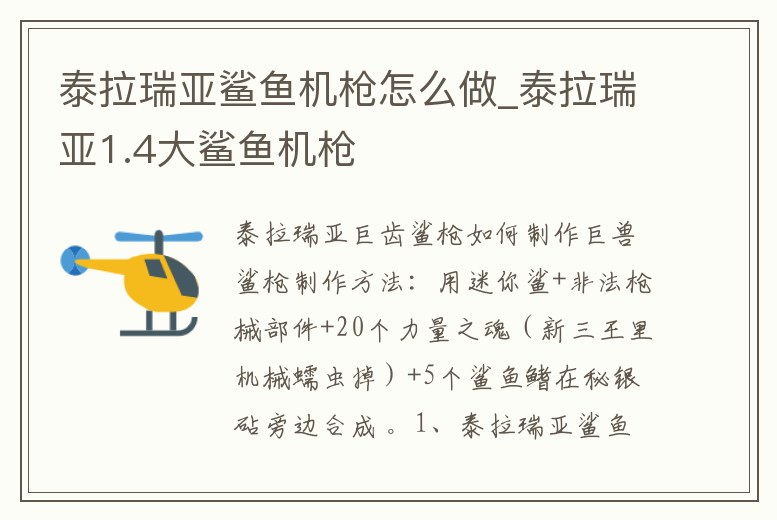 泰拉瑞亞鯊魚(yú)機(jī)槍怎么做_泰拉瑞亞1.4大鯊魚(yú)機(jī)槍