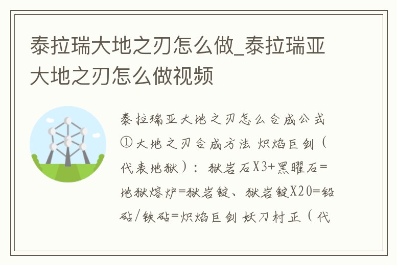 泰拉瑞大地之刃怎么做_泰拉瑞亞大地之刃怎么做視頻