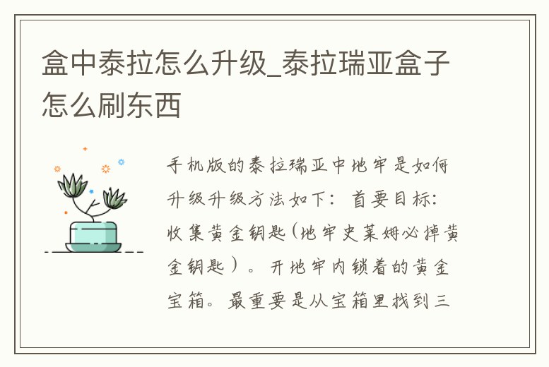 盒中泰拉怎么升級_泰拉瑞亞盒子怎么刷東西