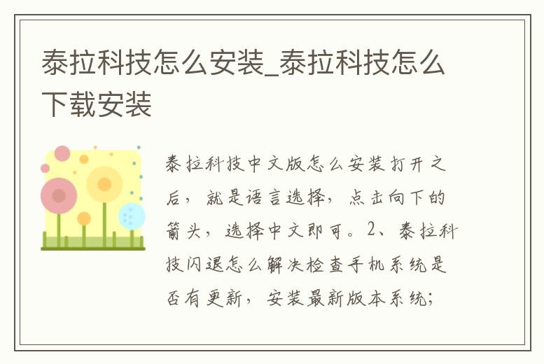泰拉科技怎么安裝_泰拉科技怎么下載安裝