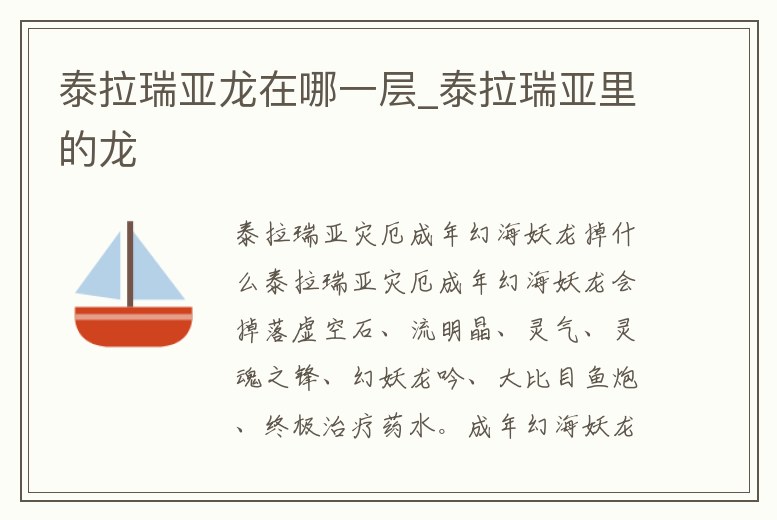 泰拉瑞亞災厄成年幻海妖龍會掉落虛空石、流明晶、靈氣、靈魂之鋒、幻妖龍吟、大比目魚炮、終極治療藥水。成年幻海妖龍是一個在深淵第四層與玩家戰斗的超級Boss。雖然它可以在任何時候被召喚,但一般在擊敗星流巨械和至尊災厄。
