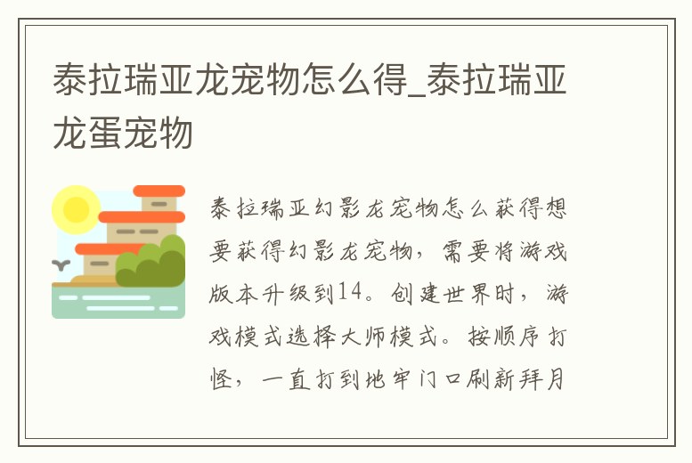 泰拉瑞亞龍寵物怎么得_泰拉瑞亞龍蛋寵物