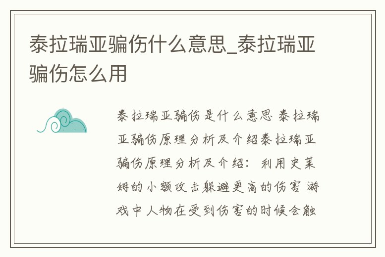 泰拉瑞亞騙傷什么意思_泰拉瑞亞騙傷怎么用