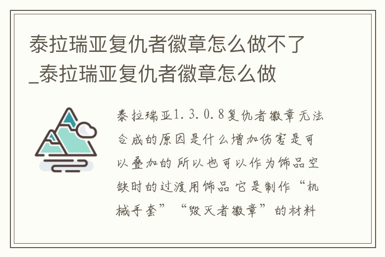 - 泰拉瑞亞復(fù)仇者徽章怎么做不了_泰拉瑞亞復(fù)仇者徽章怎么做