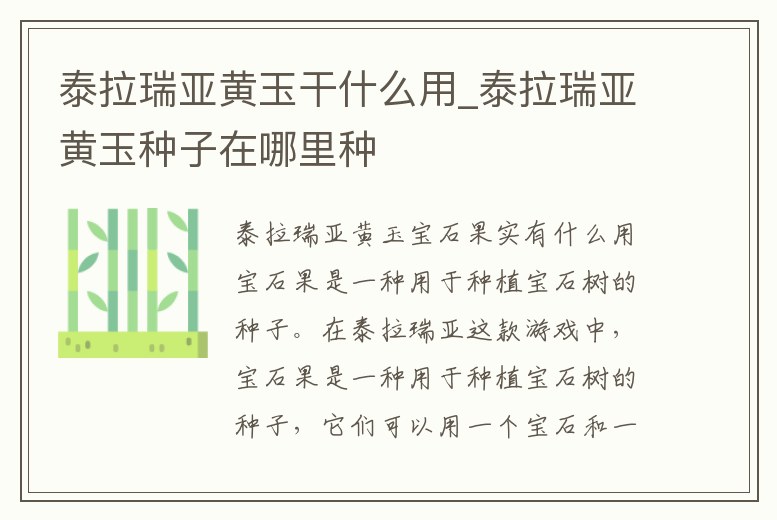 泰拉瑞亞黃玉干什么用_泰拉瑞亞黃玉種子在哪里種