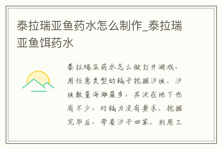 泰拉瑞亞魚藥水怎么制作_泰拉瑞亞魚餌藥水