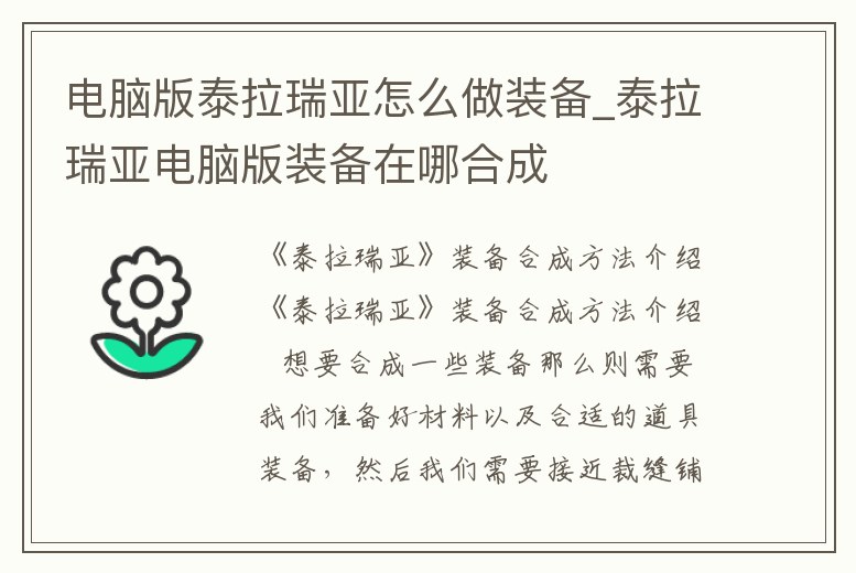 《泰拉瑞亞》裝備合成方法介紹 想要合成一些裝備那么則需要我們準(zhǔn)備好材料以及合適的道具裝備,然后我們需要接近裁縫鋪,可以開啟合成面板,我們選擇可以進(jìn)行制作的裝備就可以進(jìn)行合成了。在完成制作之后合成的裝備就會(huì)進(jìn)入到我們。