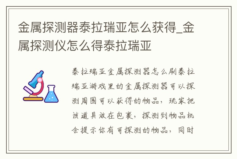 泰拉瑞亞游戲里的金屬探測器可以探測周圍可以獲得的物品,玩家把該道具放在包裹,探測到物品機會提示你有可探測的物品,同時也是制作哥布林科技的材料之一。金屬探測器有50%的概率通過擊敗染血女神(Nymph,一個地底罕見的敵人)。