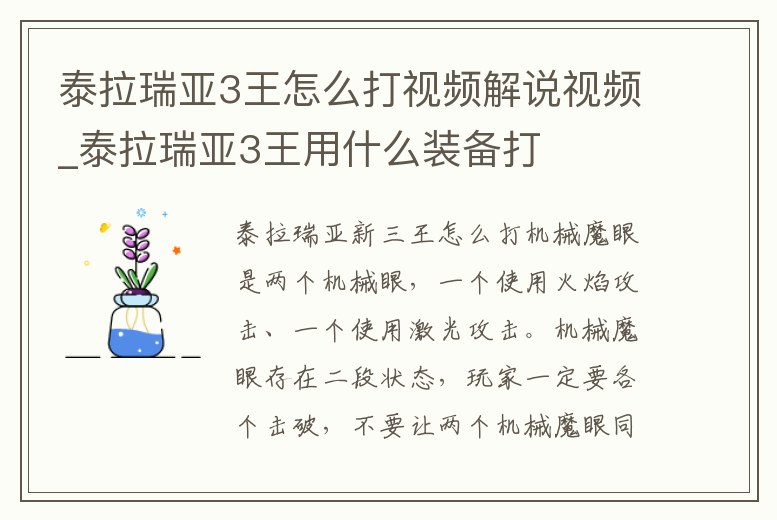 泰拉瑞亞3王怎么打視頻解說視頻_泰拉瑞亞3王用什么裝備打