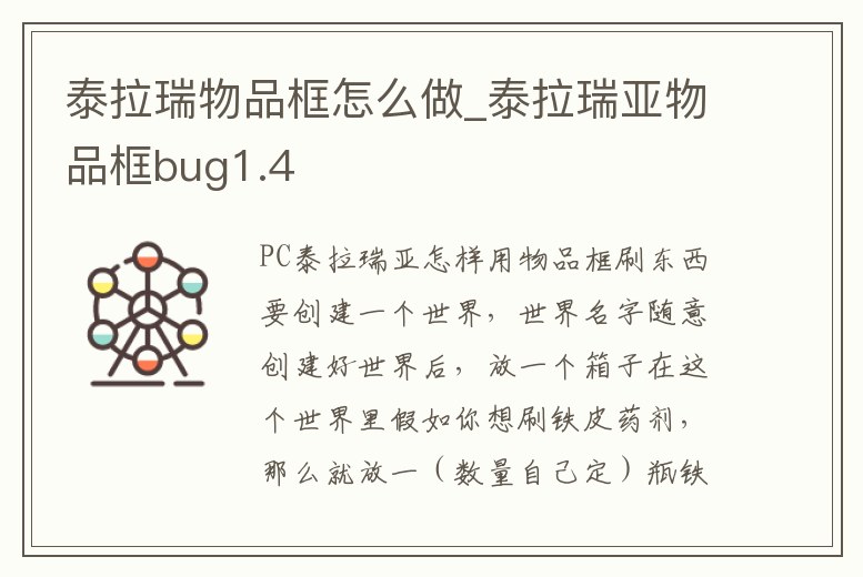 泰拉瑞物品框怎么做_泰拉瑞亞物品框bug1.4