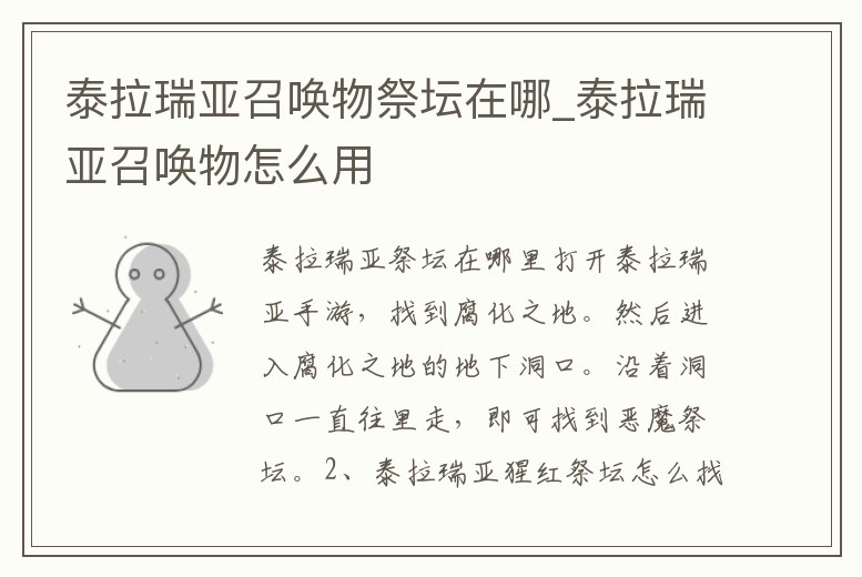 泰拉瑞亞召喚物祭壇在哪_泰拉瑞亞召喚物怎么用