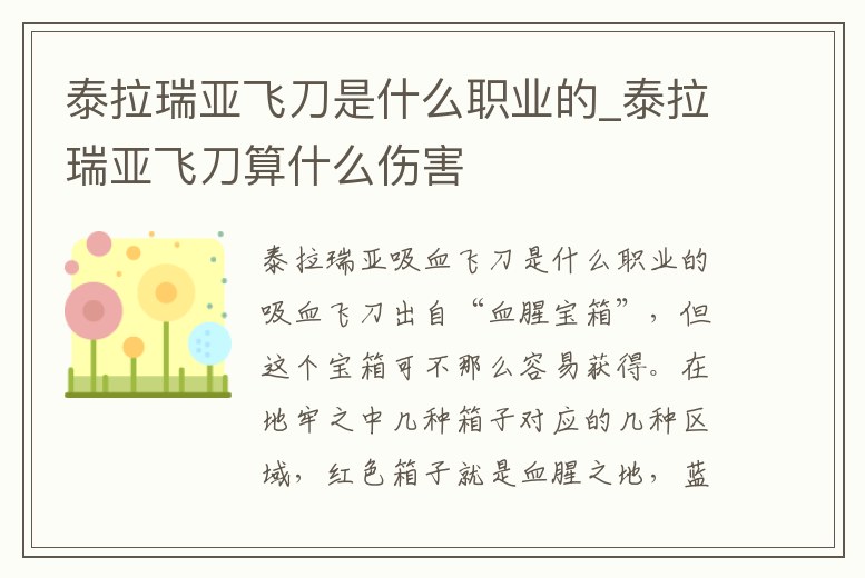 泰拉瑞亞吸血飛刀是什么職業(yè)的