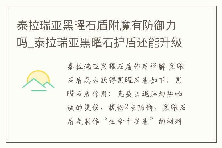 泰拉瑞亞黑曜石盾附魔有防御力嗎_泰拉瑞亞黑曜石護盾還能升級嗎