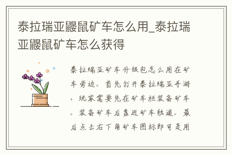 泰拉瑞亞鼴鼠礦車怎么用_泰拉瑞亞鼴鼠礦車怎么獲得