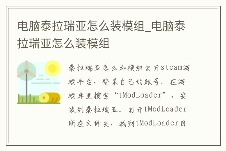 電腦泰拉瑞亞怎么裝模組_電腦泰拉瑞亞怎么裝模組