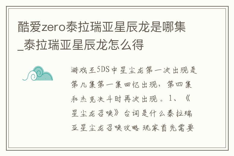 酷愛zero泰拉瑞亞星辰龍是哪集_泰拉瑞亞星辰龍?jiān)趺吹?/h1>