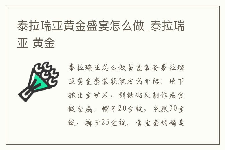 泰拉瑞亞黃金盛宴怎么做_泰拉瑞亞 黃金