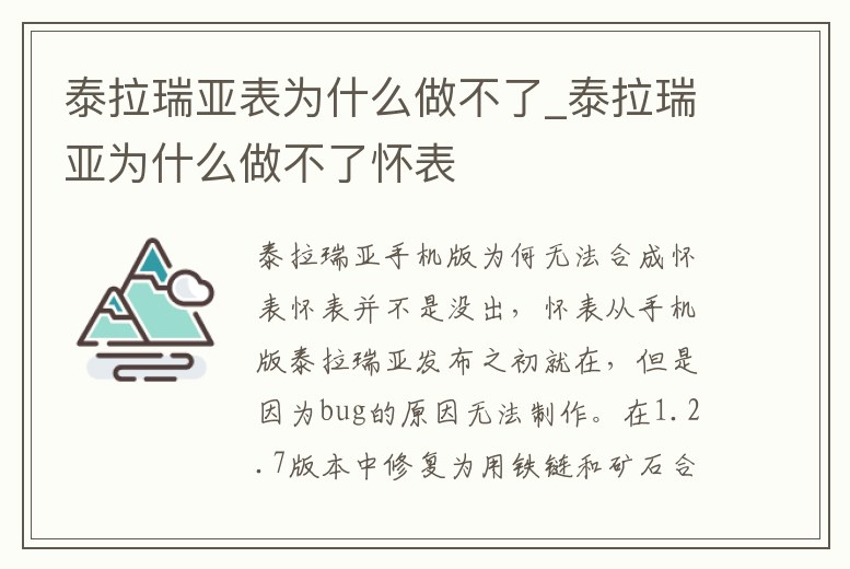 泰拉瑞亞表為什么做不了_泰拉瑞亞為什么做不了懷表