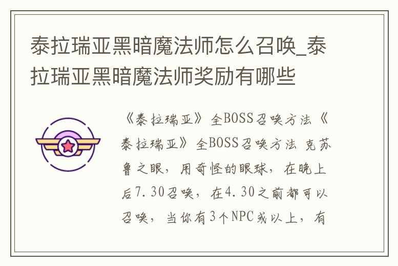 - 泰拉瑞亞黑暗魔法師怎么召喚_泰拉瑞亞黑暗魔法師獎(jiǎng)勵(lì)有哪些