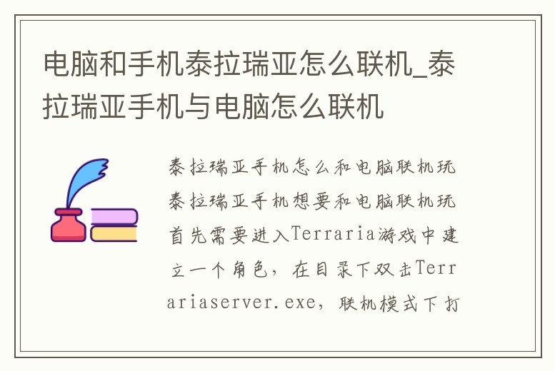 電腦和手機泰拉瑞亞怎么聯(lián)機_泰拉瑞亞手機與電腦怎么聯(lián)機