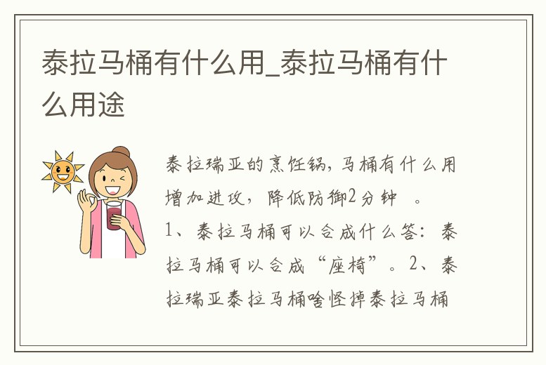 泰拉馬桶有什么用_泰拉馬桶有什么用途