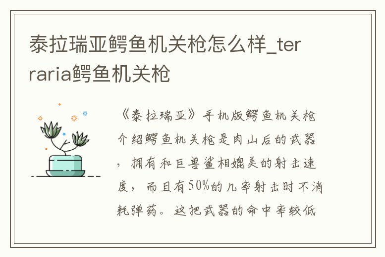 泰拉瑞亞鱷魚機關槍怎么樣_terraria鱷魚機關槍