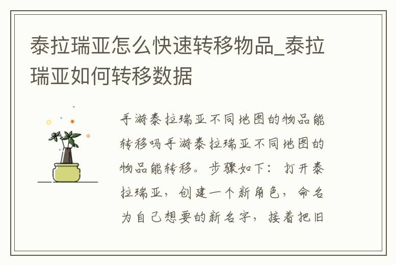 泰拉瑞亞怎么快速轉移物品_泰拉瑞亞如何轉移數據