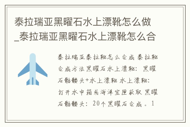 - 泰拉瑞亞黑曜石水上漂靴怎么做_泰拉瑞亞黑曜石水上漂靴怎么合成