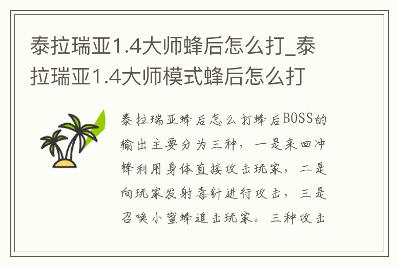 泰拉瑞亞1.4大師蜂后怎么打_泰拉瑞亞1.4大師模式蜂后怎么打