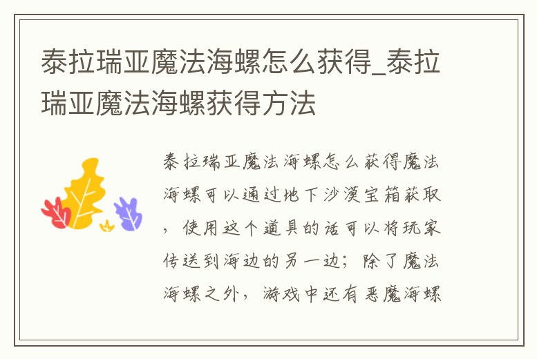 泰拉瑞亞魔法海螺怎么獲得_泰拉瑞亞魔法海螺獲得方法