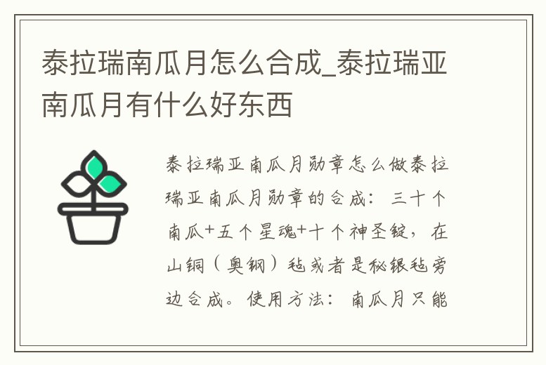 泰拉瑞南瓜月怎么合成_泰拉瑞亞南瓜月有什么好東西