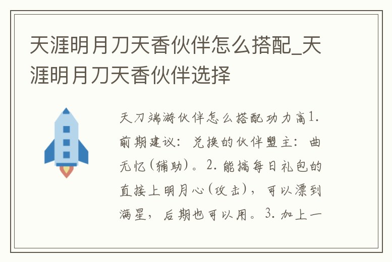 天涯明月刀天香伙伴怎么搭配_天涯明月刀天香伙伴選擇
