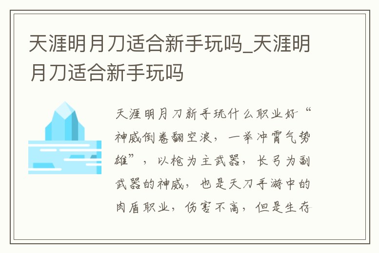 天涯明月刀適合新手玩嗎_天涯明月刀適合新手玩嗎
