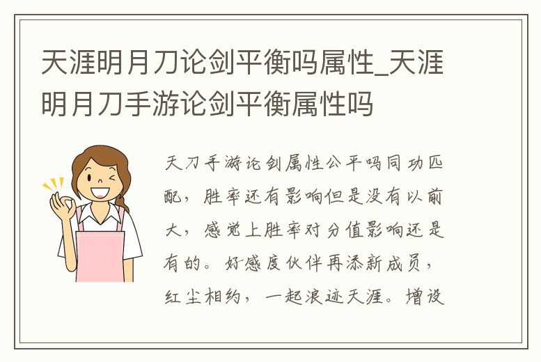 天涯明月刀論劍平衡嗎屬性_天涯明月刀手游論劍平衡屬性嗎