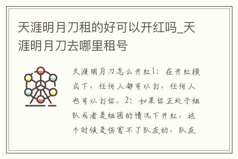 天涯明月刀租的好可以開紅嗎_天涯明月刀去哪里租號
