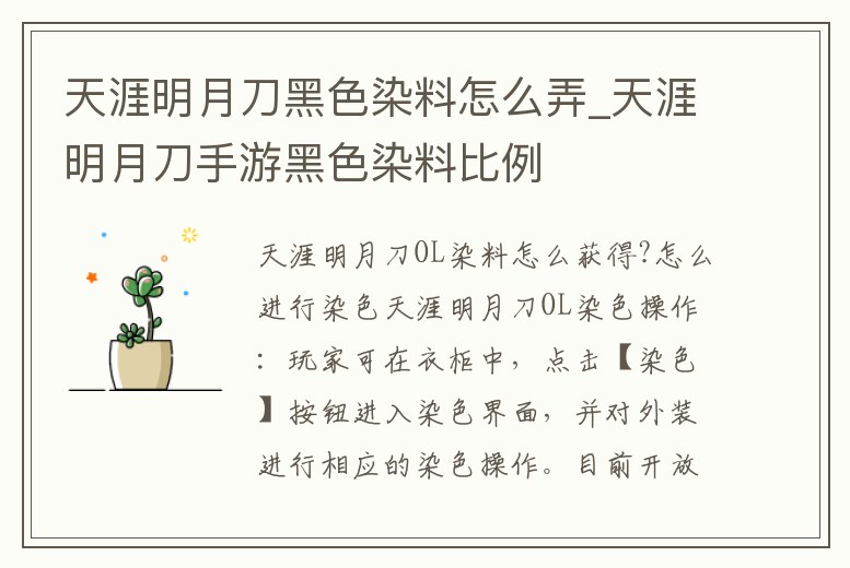 天涯明月刀黑色染料怎么弄_天涯明月刀手游黑色染料比例